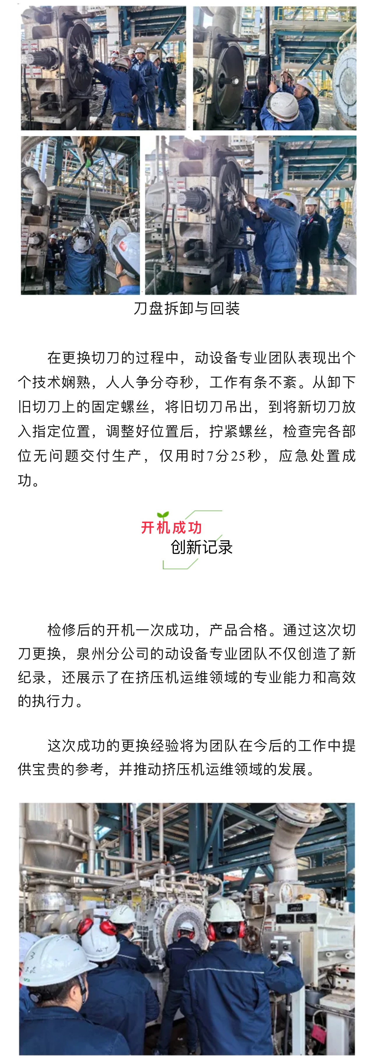 超棒!泉州動(dòng)設(shè)備團(tuán)隊(duì) | 7分25秒成功在線更換擠壓機(jī)切刀
