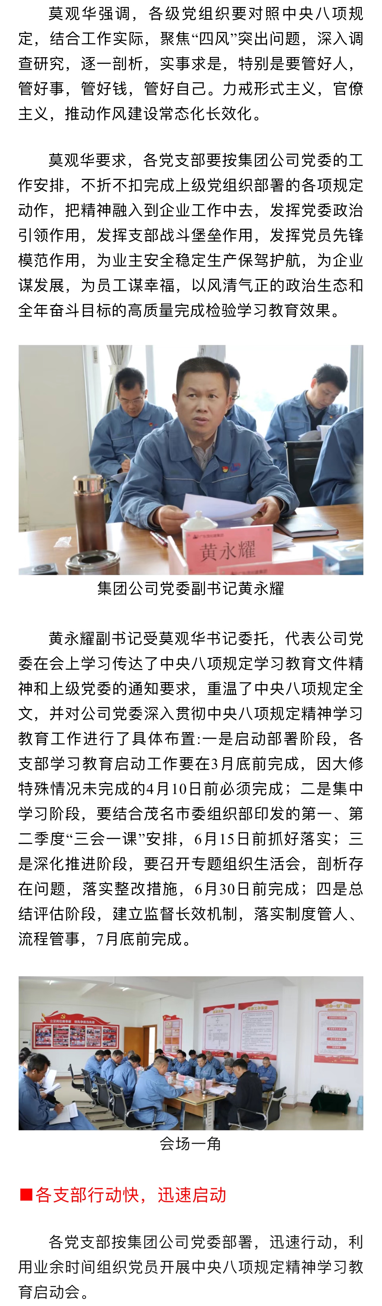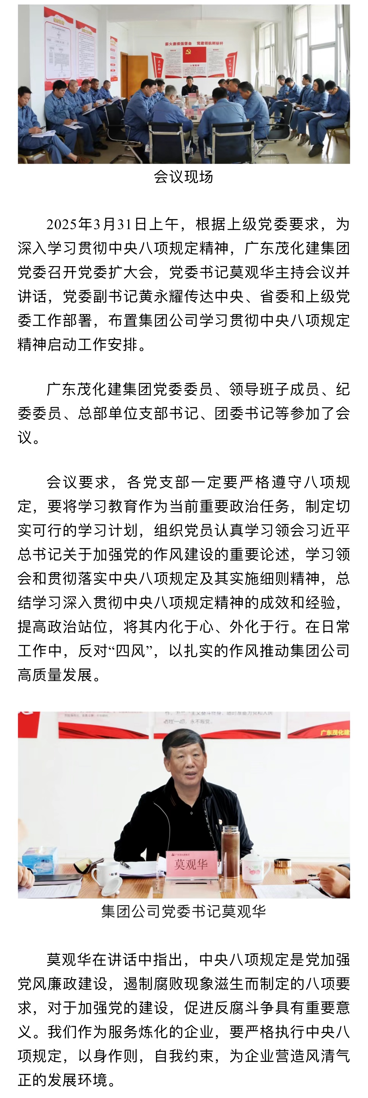 廣東茂化建集團黨委召開貫徹中央八項規(guī)定精神學習教育部署啟動會