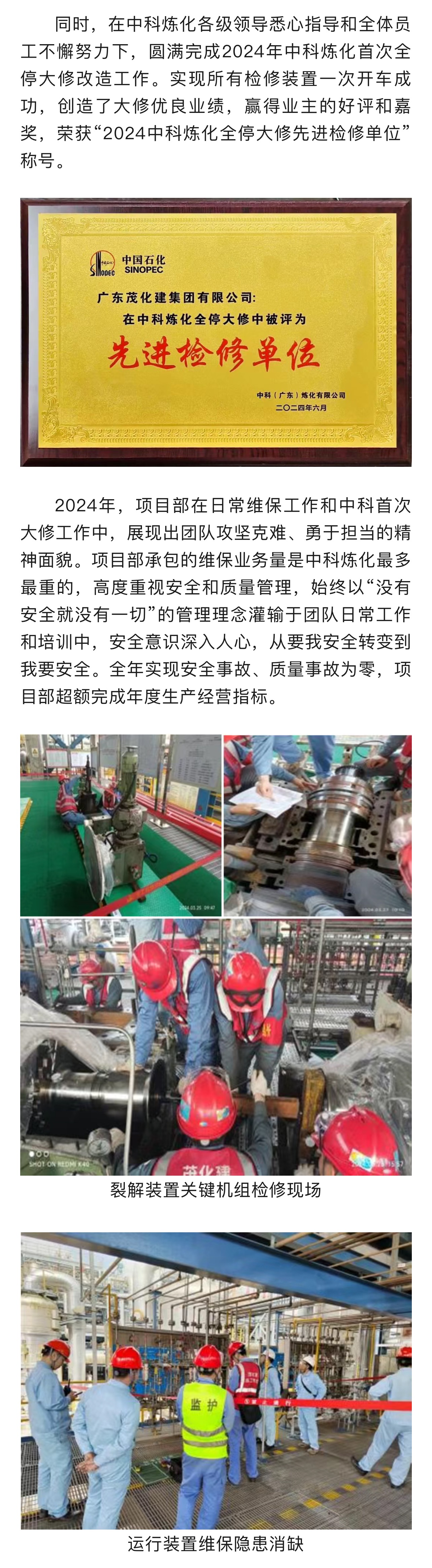 喜報|榮獲2024年中科煉化 “業(yè)務外包星級承包商”稱號