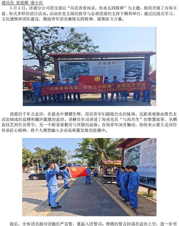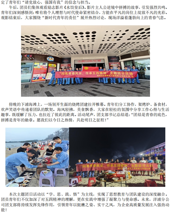 洋浦分公司團(tuán)支部開(kāi)展“閃亮青春風(fēng)采,傳承五四精神”主題團(tuán)日活動(dòng)