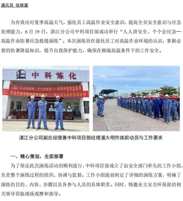 湛江分公司中科項(xiàng)目部開展高溫作業(yè)中暑應(yīng)急救援演練