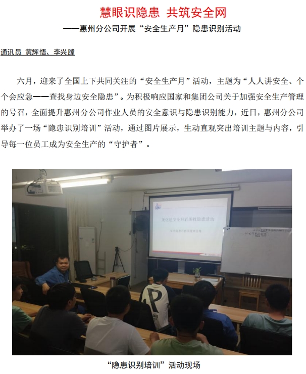 惠州分公司:慧眼識(shí)隱患 共筑安全網(wǎng)