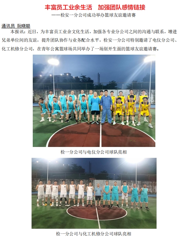 檢安一分公司成功舉辦籃球友誼邀請(qǐng)賽