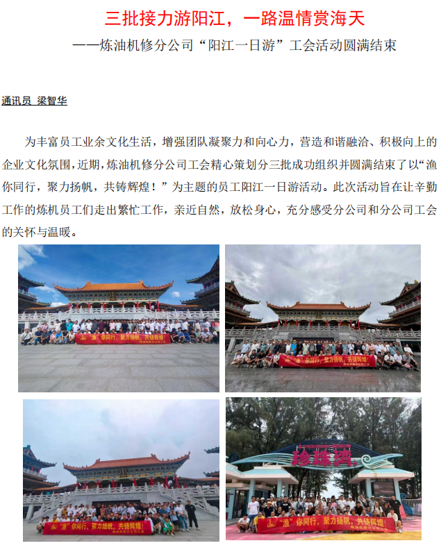 煉油機(jī)修分公司“陽江一日游”工會活動圓滿結(jié)束