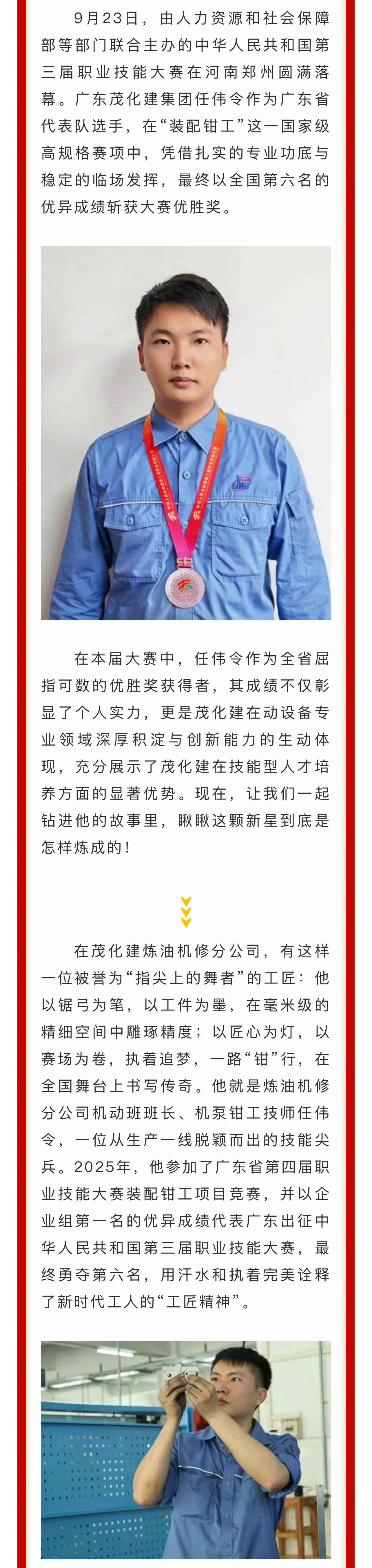 全國第六!廣東茂化建集團任偉令斬獲第三屆全國職業(yè)技能大賽優(yōu)勝獎