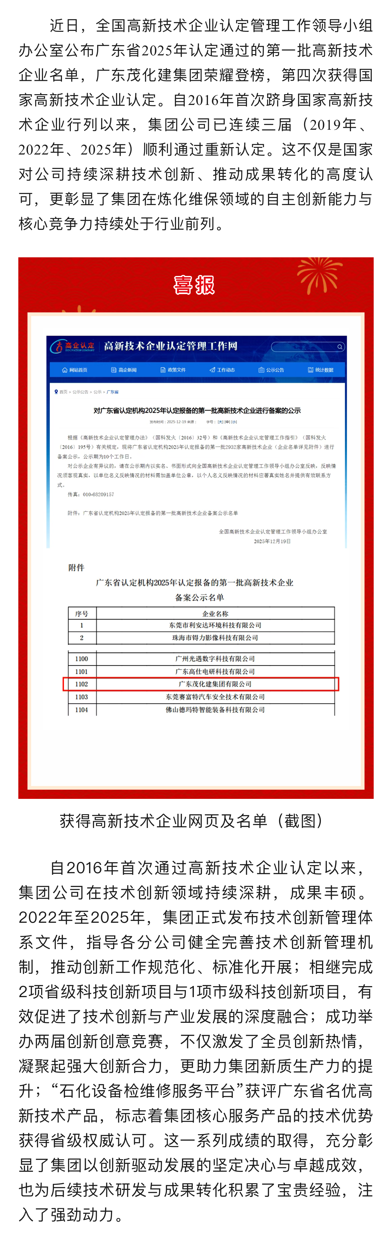 喜報 | 廣東茂化建集團再通過高新技術企業(yè)認定