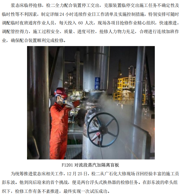 記檢安二分公司槳態(tài)床裝置應(yīng)急搶修